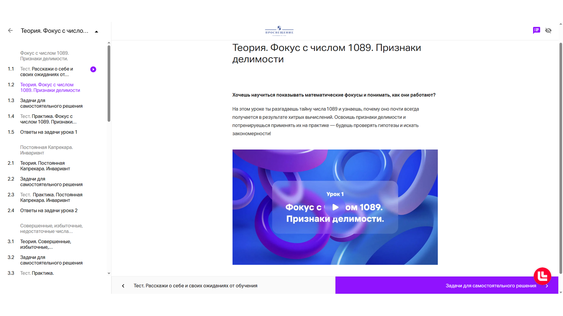 Курс построен на исследовательском подходе — каждый урок включает задания, разборы и интерактивные видео, чтобы понять, почему числа ведут себя именно так. Вместо абстрактной теории — захватывающее знакомство с магией чисел и их реальной пользой в науке и жизни.